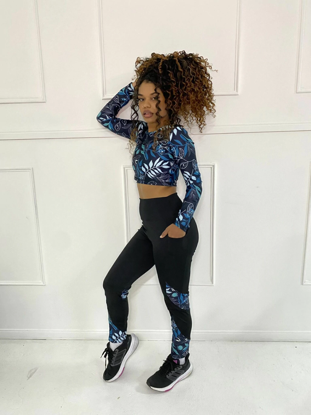 - Tela: Lycra Pesada Negra en combinación con Lycra pesada estampada. Súper elastizadas, se adaptan bien a tu cuerpo.