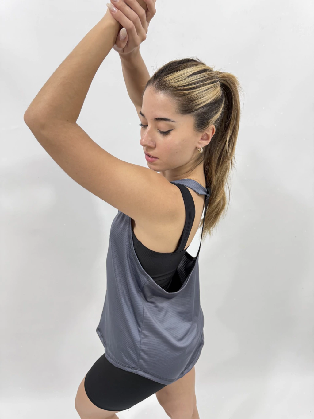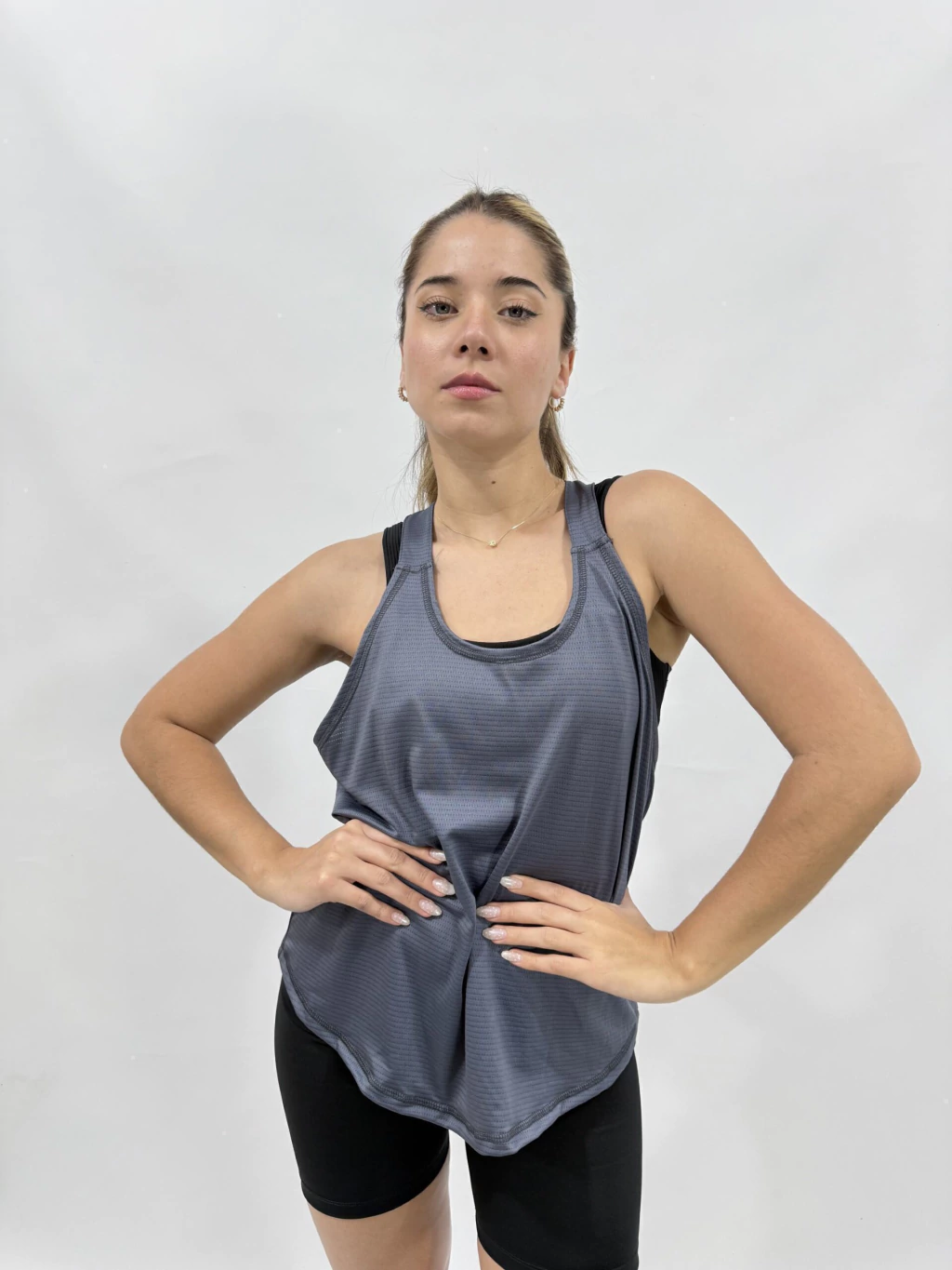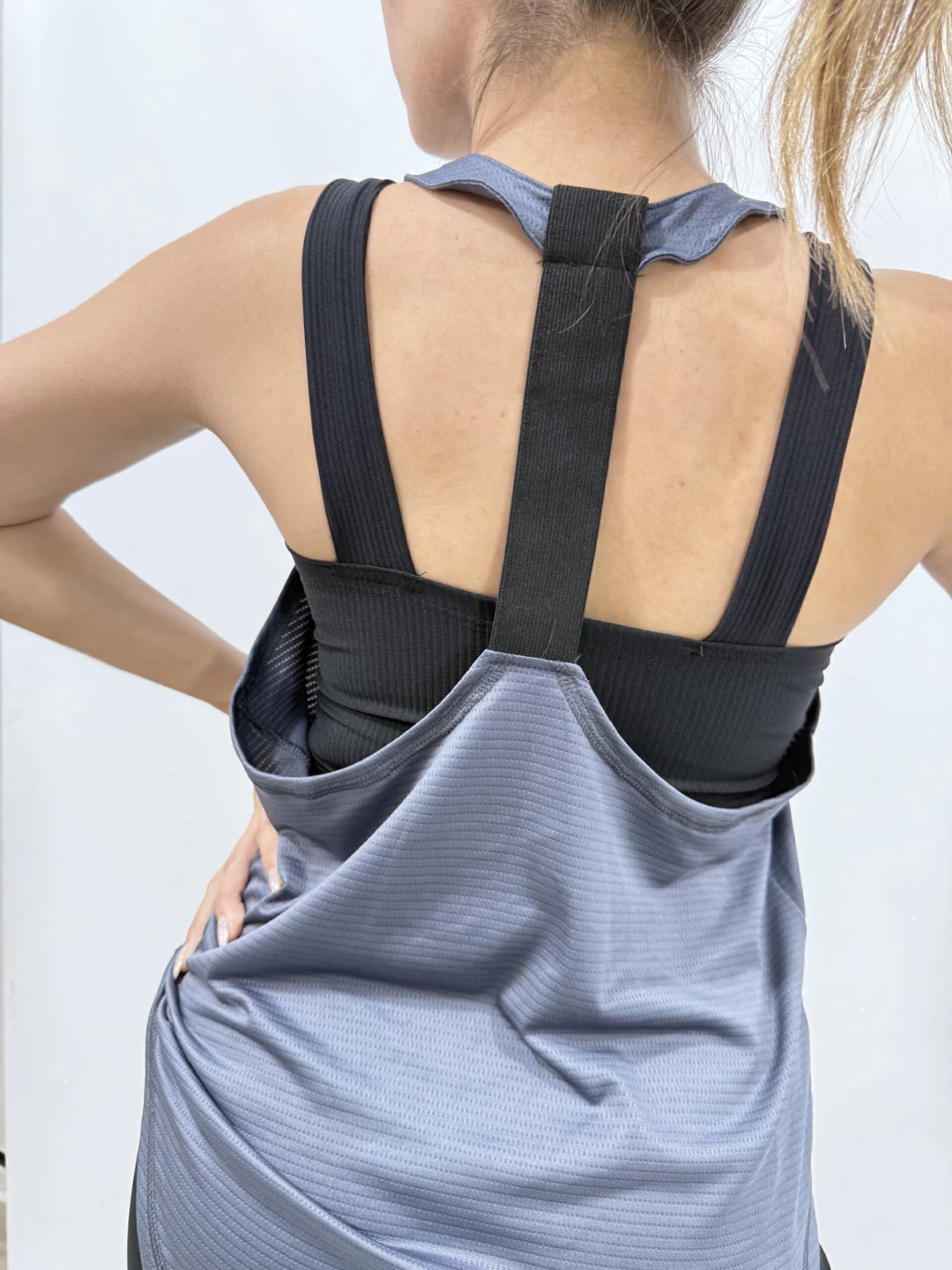 SUDADERA GINA Tela: Dryfit Respirable Escote delantero redondeado. Sisas cavadas. Espalda angosta con elastico negro. Ideal para usar sobre el top y que se aprecie el diseño. Disponible en 8 colores y 2 talles: 1(S-M) y 2(L-XL)
